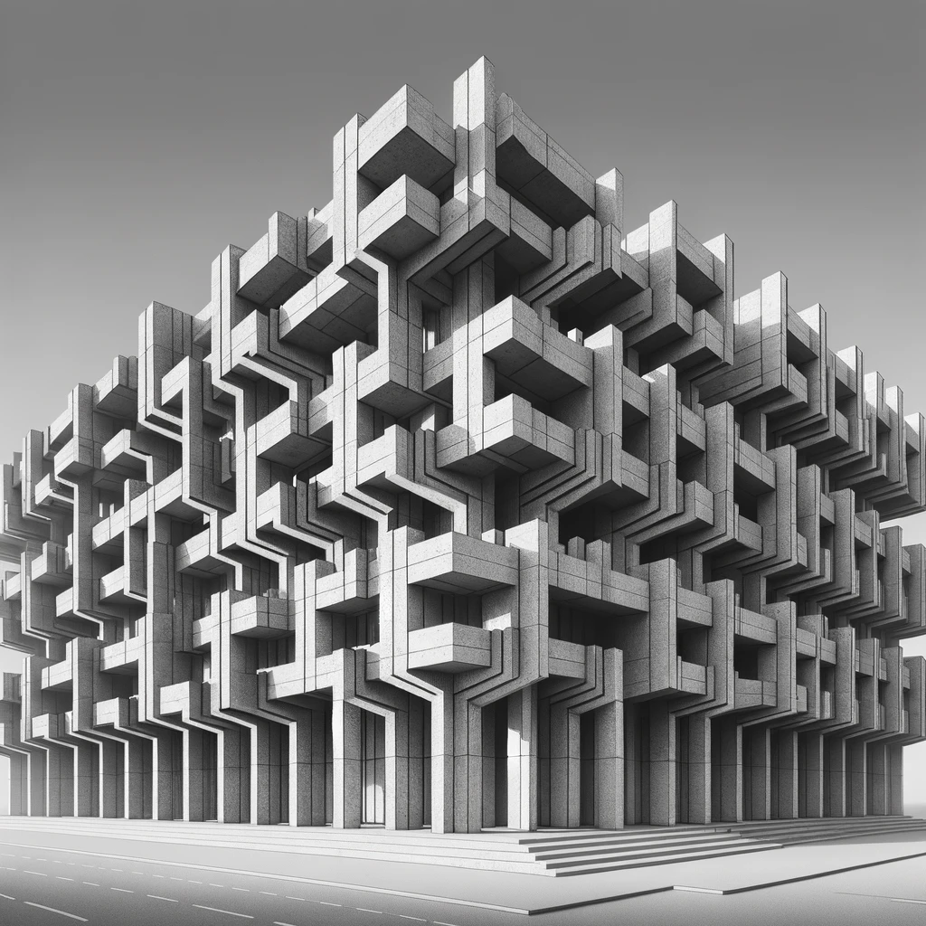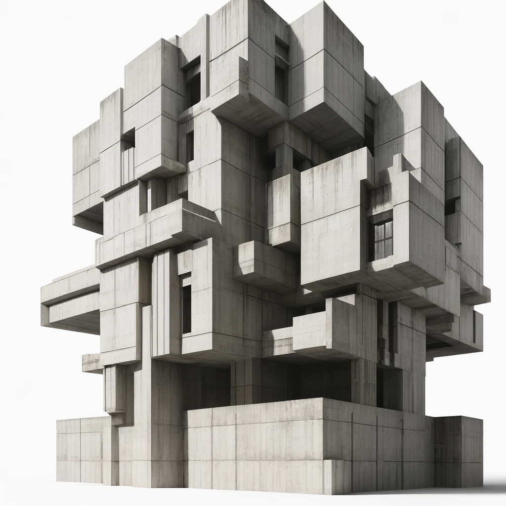 - 일체형 형태: 브루탈리즘 구조물은 종종 거대하고 블록 같은 형태를 특징으로 하며, 이는 위압적이고 요새와 같은 느낌을 줄 수 있습니다. 이러한 형태는 장식 요소가 거의 없으며, 대신 기능적 디자인에 중점을 둡니다.
